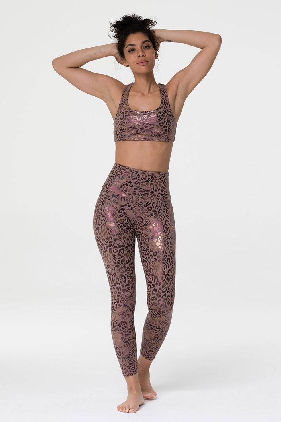 Onzie Mudra Bra ($49) and Animal Foil Midi Legging ($74)