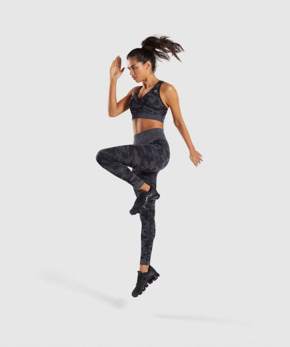 Gymshark Camo Seamless Sports Bra ($45) and Camo Seamless Leggings ($60